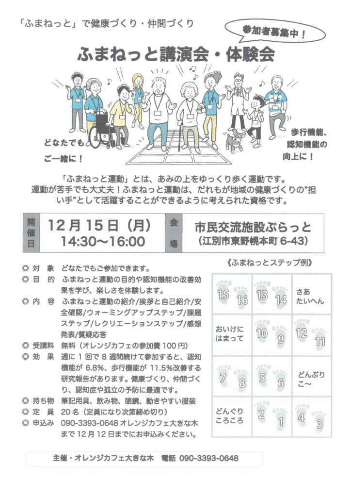 - 申込締切:12月12日まで(オレンジカフェ大きな木へ)