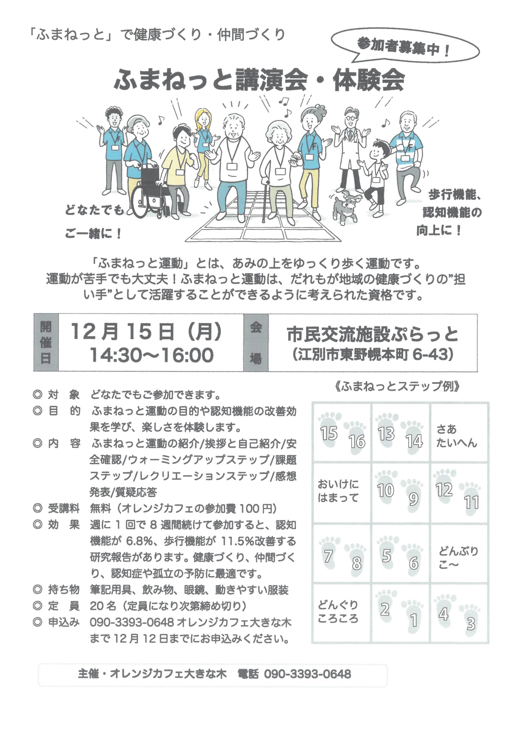 - 持ち物:筆記用具、飲み物、眼鏡、動きやすい服装