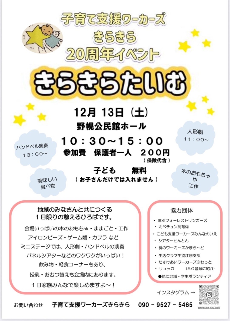 子育て支援ワーカーズ きらきら 20周年イベント きらきらたいむ @ 野幌公民館ホール