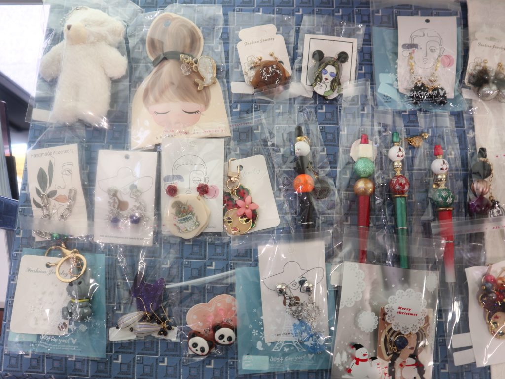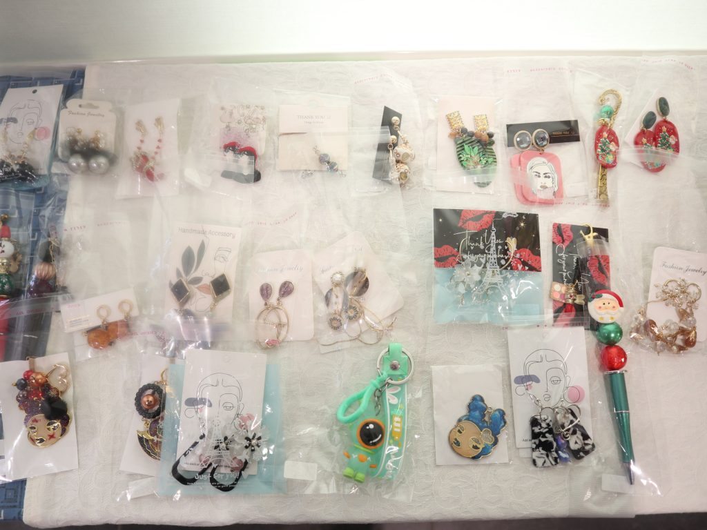 韓国ビーズや天然石を使った手作りの綺麗なピアスが多数並んでいます。